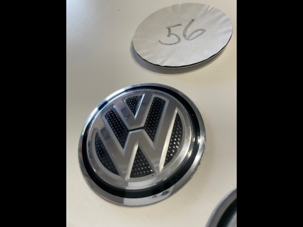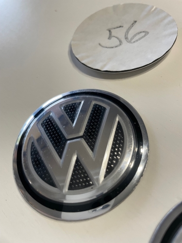 Vzhled tečky - dávalo se na modely okolo r. 2015. Nabízím 4ks/sada středových pokliček (samolepky). Průměr 56 mm. Podklad hliník, montáž nalepením (oboustranná lepenka). Vypouklé. Cena za sadu.