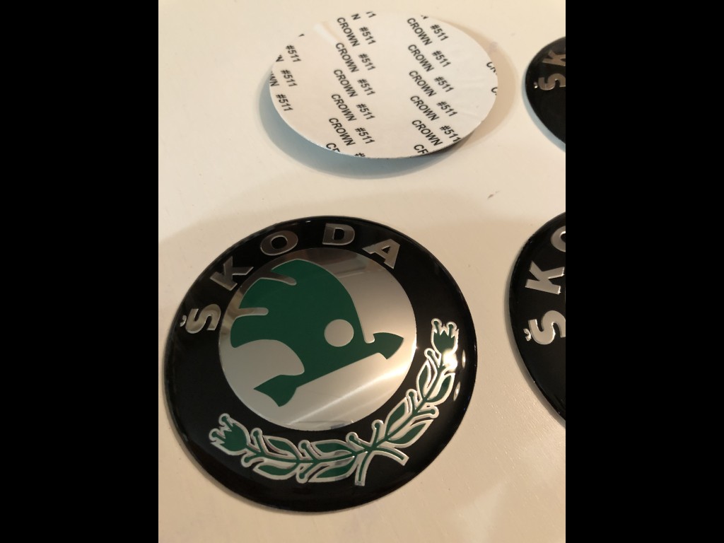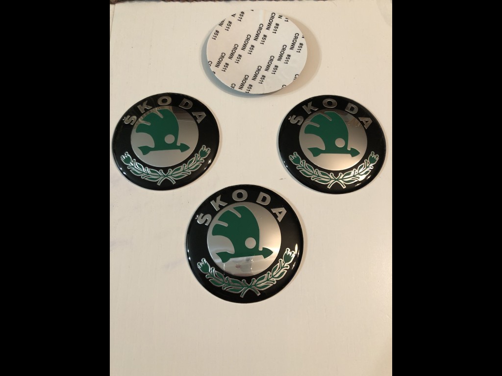 65 Středové pokličky /samolepky na alu Škoda zelený