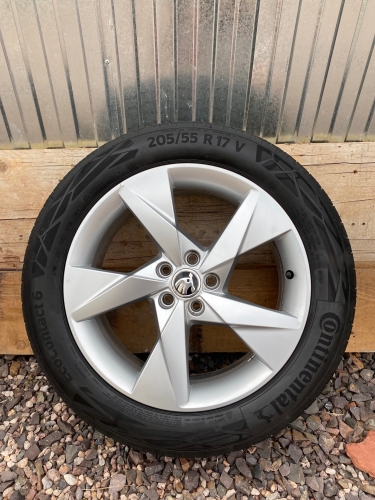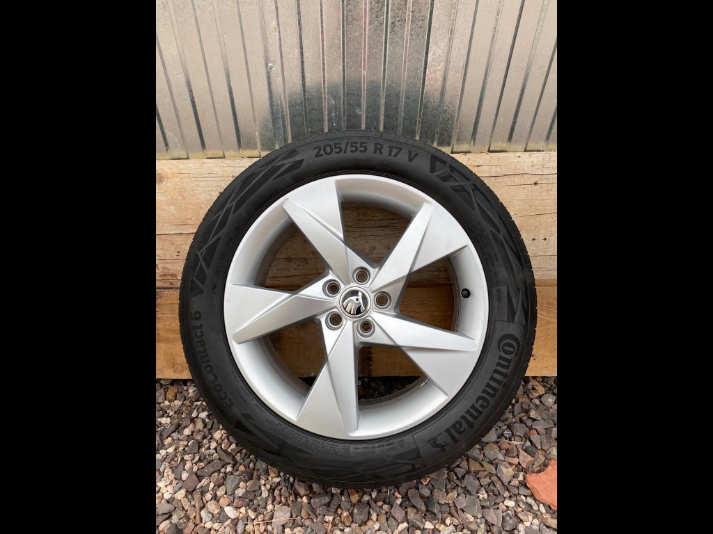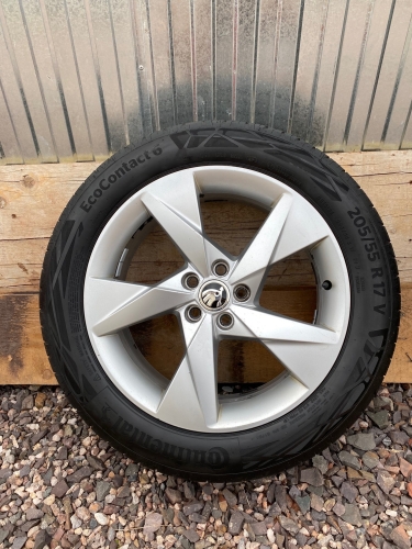Prodám originální 17" kola označení Volans. Určené na vůz Škoda Kamiq, Scala či jiná vozidla. 6.5Jx17H2 (6.5J), ET40, 205/55 R17 pneu letní 205/55/17 ContiEcoContact 6 (DOT 1521). Pasují na všechny koncernové modely s roztečí 5x100 Rapid, Fabia - z důvodu podmínek inzertního serveru je zde nemohu zmínit, ale sdělím Vám je po telefonu nebo emailem. číslo dílu: 657601025C.