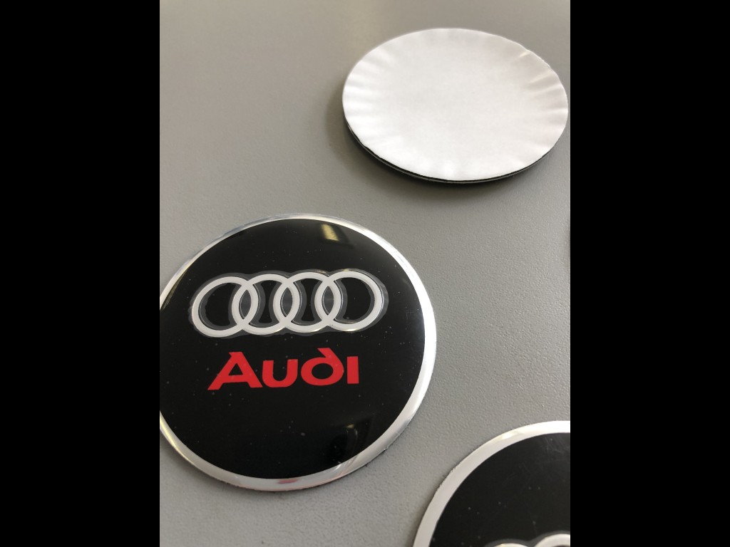 Nabízím 4ks/sada středových pokliček (samolepky). Průměr 56 mm. Podklad hliník, montáž nalepením(oboustranná lepenka). Vypouklé. Cena za sadu